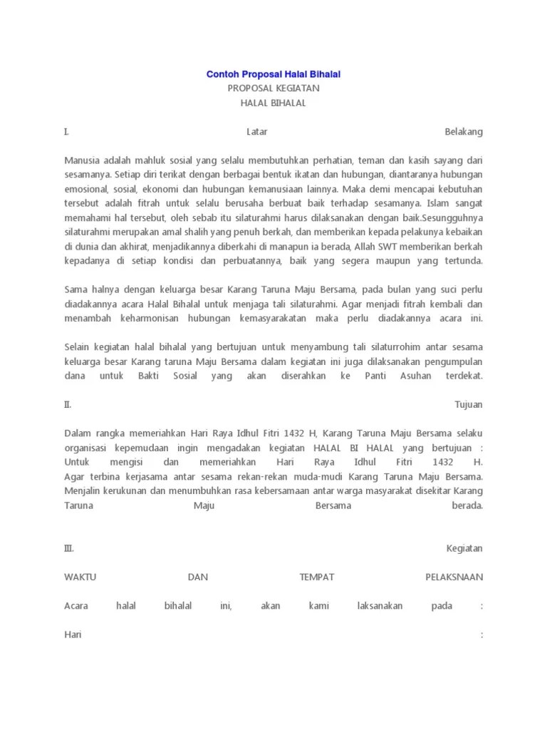 Contoh proposal kegiatan halal bihalal proposal kegiatan halal bihalal i.